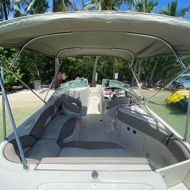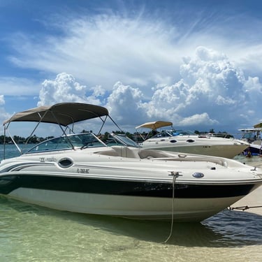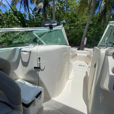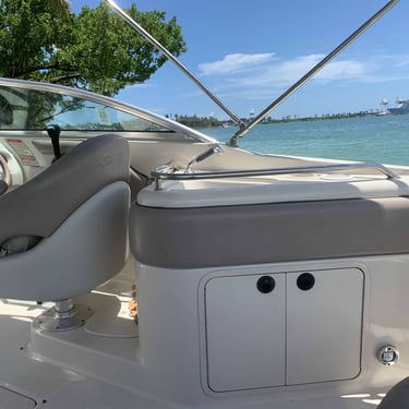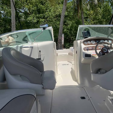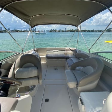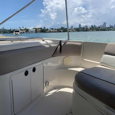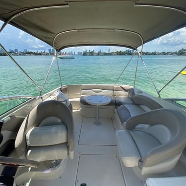 Explore this 26FT Sea Ray Sundeck Sport boat rental in Miami, designed for fun, comfort, and easy cruising. With open seating and a great layout, this boat is perfect for enjoying the water with your group at an affordable price.