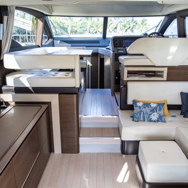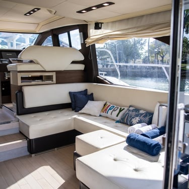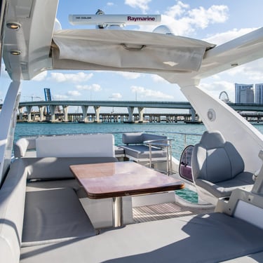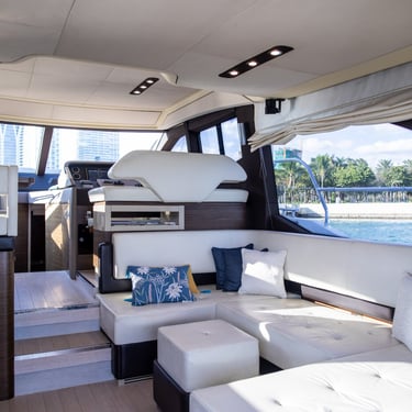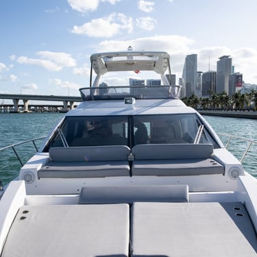 Explore this elegant 53FT Azimut yacht rental in Miami, featuring a spacious flybridge, modern interior, and a smooth cruising experience. Designed for comfort and style, this yacht is perfect for both relaxing and celebrating on the water.
