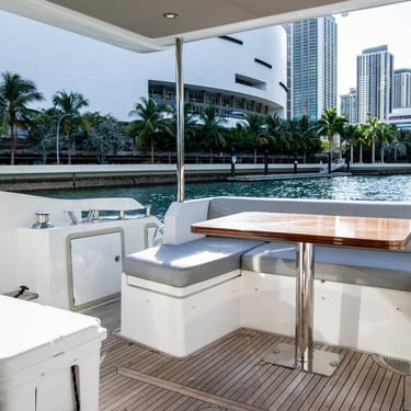 With capacity for up to 13 guests, this yacht is ideal for small to medium-sized groups looking for a private and exclusive experience in Miami. The onboard Bluetooth sound system allows you to create the perfect vibe, while the comfortable seating areas provide space for everyone to relax.