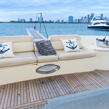 The flybridge provides an elevated space to take in panoramic views, while the interior offers a comfortable and stylish environment to relax with friends and family. Whether you're celebrating a birthday, planning a small gathering, or simply exploring Miami from the water, this yacht delivers a versatile and enjoyable experience.