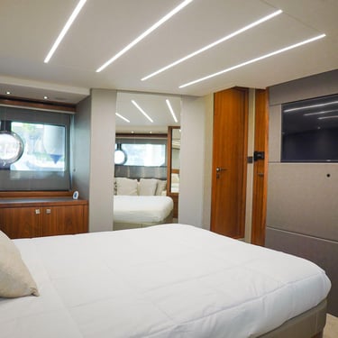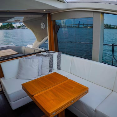 The sleek design, spacious layout, and high-end finishes make this Sunseeker stand out among other yacht rentals in Miami. Guests can relax, enjoy music, and take in the scenery while experiencing a smooth and comfortable ride.